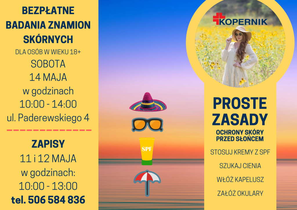 W sobotę 14 maja – miesiącu świadomości czerniaka – Szpital Kopernika w Łodzi zaprasza osoby w wieku 18+ na bezpłatne dermatoskopowe badania znamion skórnych.