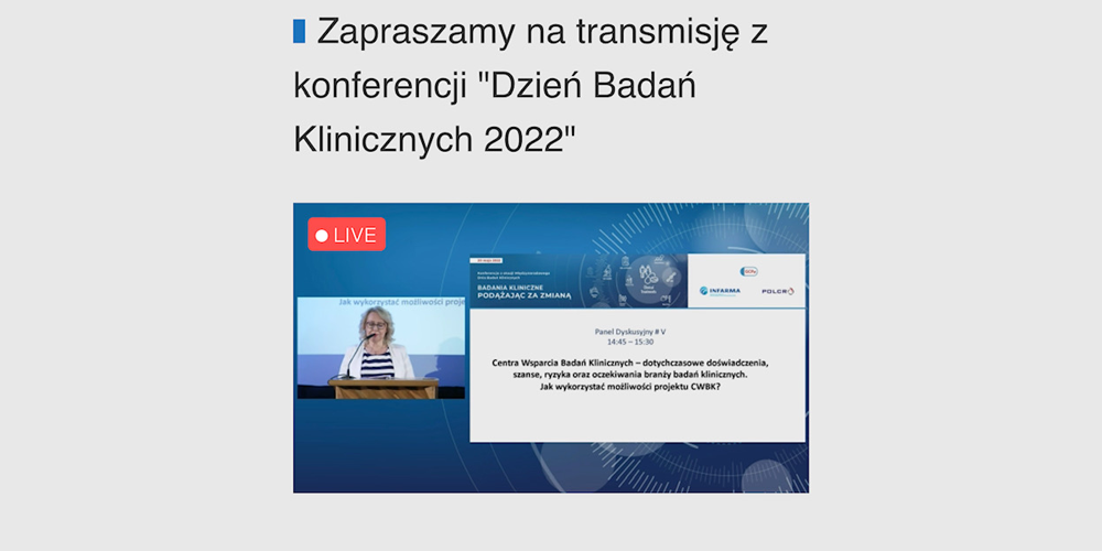 20 maja 2022r. z okazji Międzynarodowego Dnia Badań Klinicznych odbyła się konferencja pt. „Badania kliniczne – podążając za zmianą”.