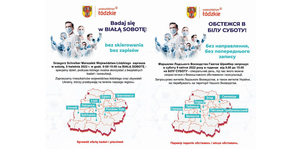 У рамках «Білої суботи», яка відбудеться 9 квітня, лікарня «Коперник» у Лодзі пропонує онкологічні консультації для жителів воєводства та громадян України, які проживають на Лодзінщині.