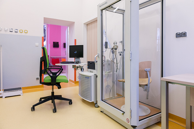 - chorób układu oddechowego, w tym zapaleń płuc, zapaleń oskrzelików, astmy oskrzelowej oraz innych ostrych, nawracających i przewlekłych chorób układu oddechowego. Badania diagnostyczne: przezklatkowe badanie USG płuc, badanie poziomu tlenku azotu w powietrzu wydychanym, badania czynnościowe układu oddechowego, w tym m.in. spirometrię, próbę odwracalności, bodypletyzmografię, oscylometrię, badanie oporów dróg oddechowych.
