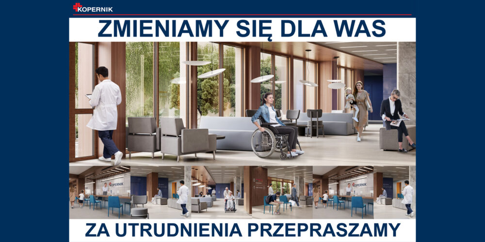 Przebudowany zostanie również Punkt Przyjęć Pacjentów Planowych i Rejestracja, które do 31 grudnia 2023 będą funkcjonowały w lokalizacjach zastępczych na terenie Wojewódzkiej Przychodni Onkologicznej. Za utrudnienia przepraszamy – zmieniamy się dla Was.