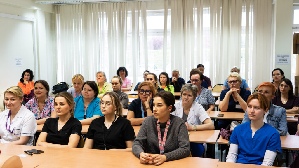 Prelekcję wygłosiła mgr Agnieszka Cielecka, pielęgniarka stomijna opiekująca się pacjentami naszego Szpitala, na co dzień pracująca na Oddziale Chirurgii Onkologicznej. O swoich doświadczeniach w zakresie opieki nad pacjentami ze stomią opowiedziała też Pani Hanna Łukaszewska, specjalizująca się w doborze odpowiedniego sprzętu stomijnego dla pacjentów.