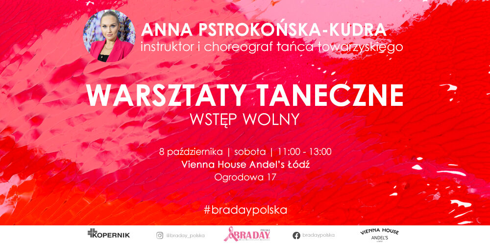 Anna Pstrokońska-Kudra poprowadzi zajęcia taneczne w rytmach latino. Prosimy o przybycie na warsztaty w stroju niewymagającym korzystania z przebieralni i zabranie ze sobą sportowego obuwia na zmianę.