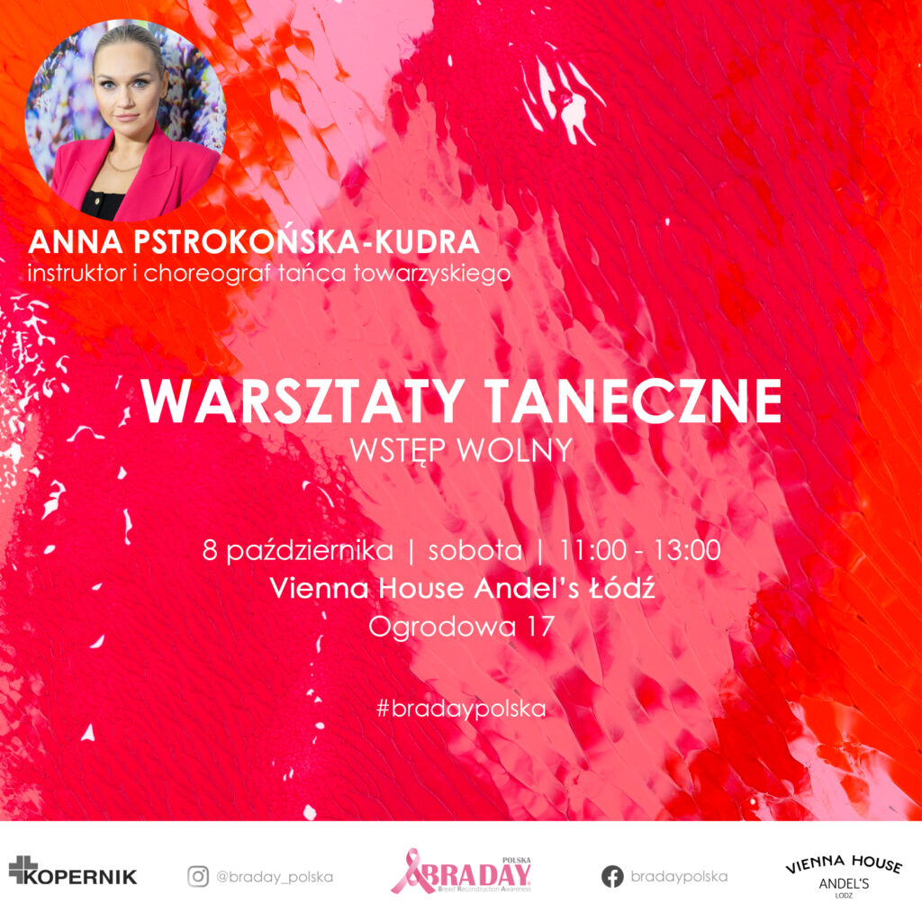 Zaczęliśmy warsztaty w ramach BRA Day Polska. Ruch to zdrowie i jeden z filarów Europejskiego Kodeksu Walki z Rakiem, więc potańczyliśmy. Niezmiernie nas cieszy, że byli też z nami panowie, wspierający swoje partnerki. Dziękujemy naszemu Partnerowi, hotelowi Vienna House Andel’s Lodz Vienna House i wspaniałej instruktorce Annie Pstrokońskiej-Kudrze.
