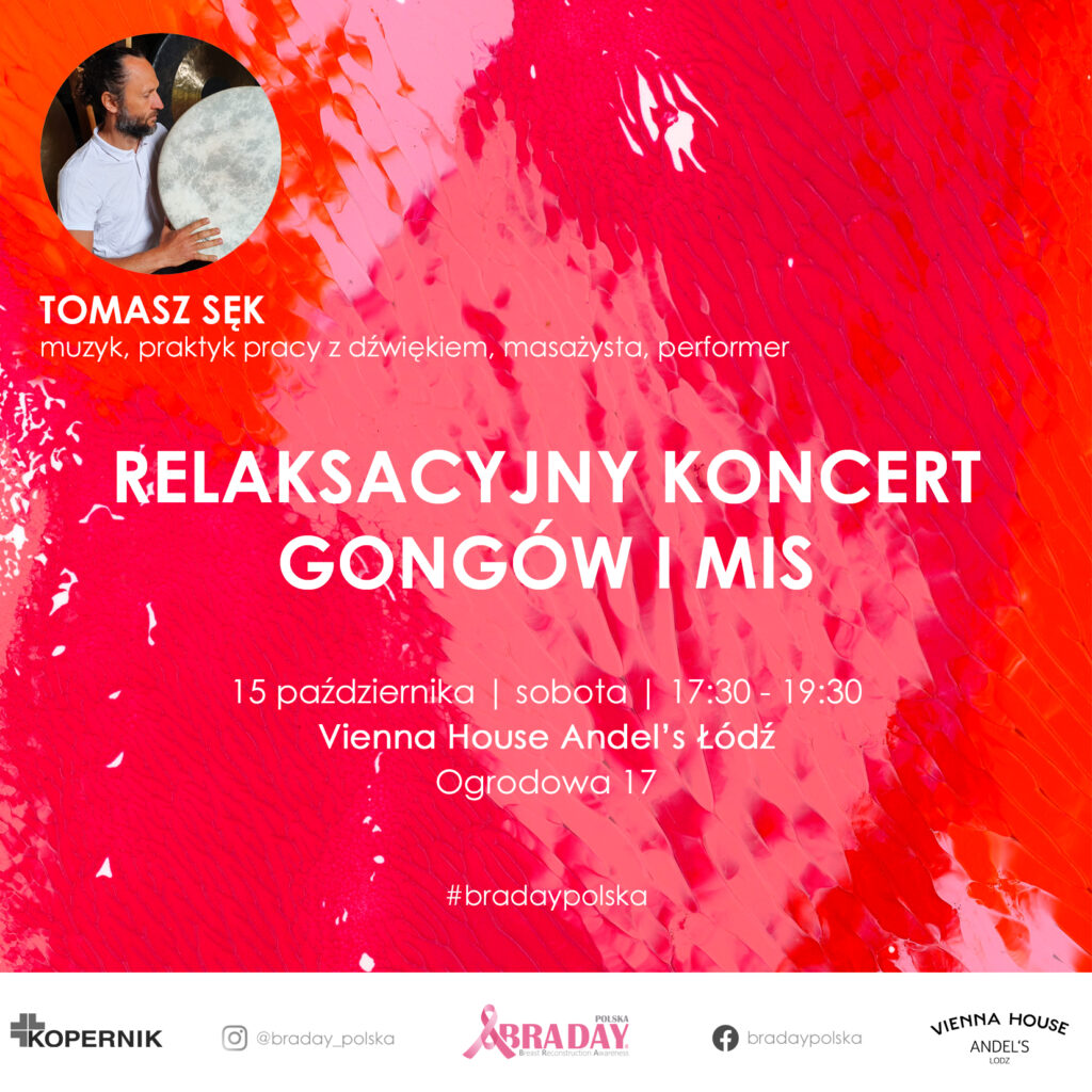 15.10 o godz. 17:30 w hotelu Vienna House Andel’s Lodz Vienna House (ul. Ogrodowa 17) odbył się wyjątkowy, relaksacyjny koncert gongów i mis, w wykonaniu Tomasza Sęka – muzyka, praktyka pracy z dźwiękiem, masażysty, performera. Podczas koncertu uczestnicy mieli okazję doświadczyć dźwięku gongów, mis tybetańskich, didgeridoo, bębna oceanicznego, dzwonków zaphir oraz zanurzyli się w przestrzeni sprzyjającej relaksacji, medytacji oraz doznaniu dobroczynnego wpływu dźwięku. A to wszystko prowadzi nas do wyciszenia, uspokojenia i powrotu do równowagi.