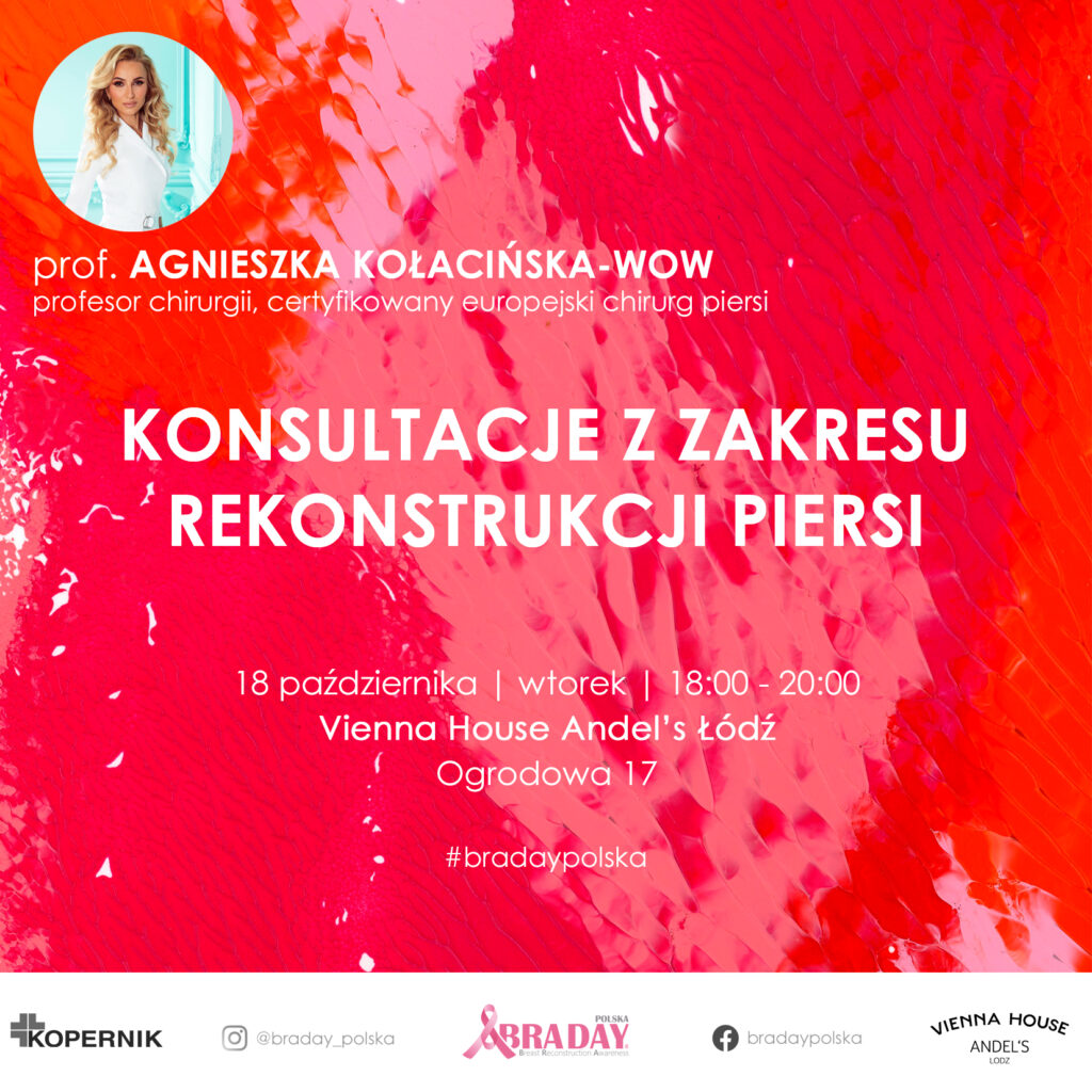 W naszym szpitalu operacje rekonstrukcji piersi po zabiegach mastektomii traktowane są jako integralna część leczenia kobiet doświadczonych chorobą nowotworową piersi. We wtorek 18 października w godz. 18:00-20:00 prof. Agnieszka Kołacińska-Wow, w kameralnych warunkach, w przestrzeni hotelu Vienna House Andel’s Lodz (ul. Ogrodowa 17) będzie w ramach wydarzenia BRA Day Polska udzielać bezpłatnych konsultacji z zakresu rekonstrukcji piersi. Wstęp wolny.
