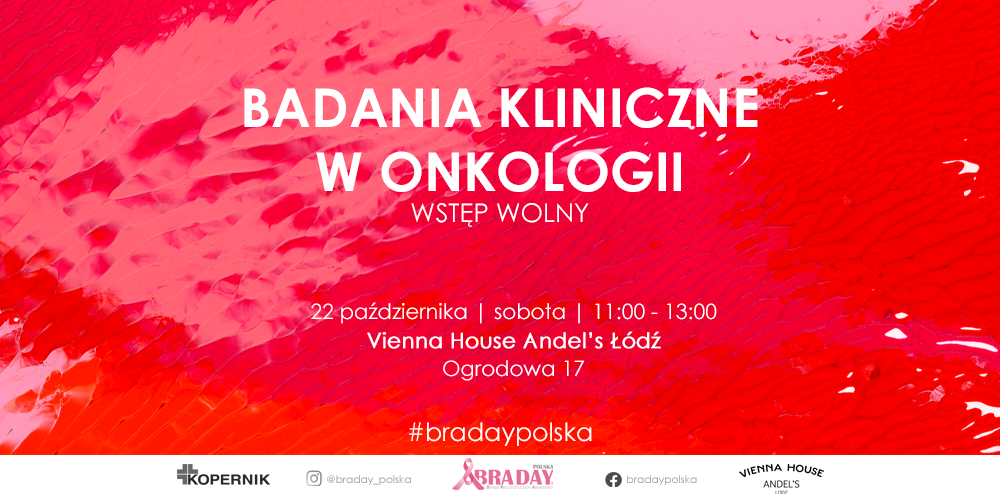 22 października, o godz. 11:00 w hotelu Vienna House Andel’s Lodz (ul. Ogrodowa 17) odbędą się wyjątkowe warsztaty, poświęcone badaniom klinicznym w onkologii. Zapraszamy pacjentów onkologicznych, ich bliskich, a także wszystkich zainteresowanych tą tematyką. Grono ekspertów opowie, czym są badania kliniczne, do kogo są kierowane, dla kogo są szansą na powrót do zdrowia, jak wygląda proces leczenia w badaniach klinicznych i jakie możliwości objęcia tego typu badaniami mają pacjenci onkologiczni w naszym szpitalu i w Polsce. Eksperci rozwieją wątpliwości i odpowiedzą na nurtujące pytania. Zapraszamy! Wstęp wolny! To będzie bardzo wartościowe spotkanie.