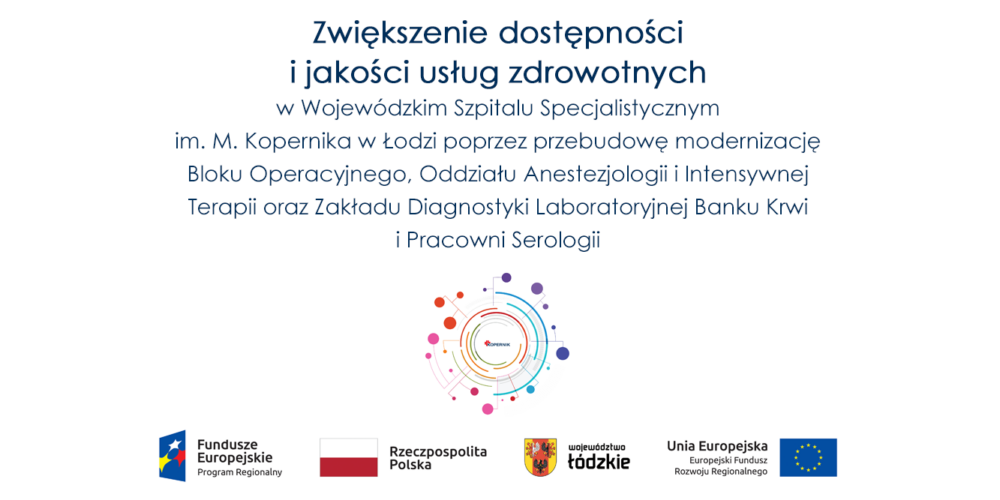 13 grudnia o godz. 12:00 odbędzie się konferencja podsumowująca realizację projektu pn: „Zwiększenie dostępności i jakości usług zdrowotnych w Wojewódzkim Szpitalu Specjalistycznym im. M. Kopernika w Łodzi poprzez przebudowę modernizację Bloku Operacyjnego, Oddziału Anestezjologii i Intensywnej Terapii oraz Zakładu Diagnostyki Laboratoryjnej Banku Krwi i Pracowni Serologii” (umowa o dofinansowanie nr UDA-RPLD.07.02.00-10-0057/17-00 z dnia 28.06.2017 r.).
