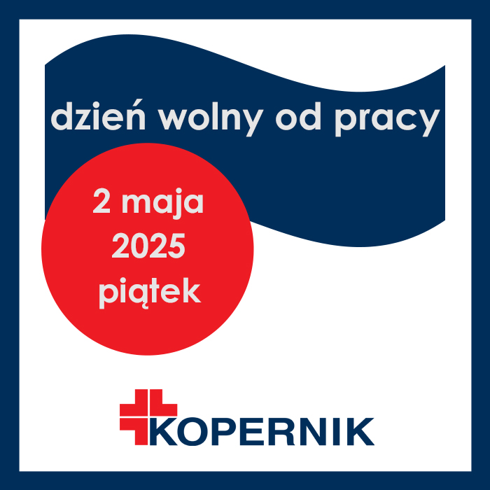2 maja 2025 jest dla pracowników Centrum dniem wolnym w zamian za 3 maja 2025. Dlatego 2 maja nasz Szpital będzie funkcjonował tak jak w weekendy i dni świąteczne.