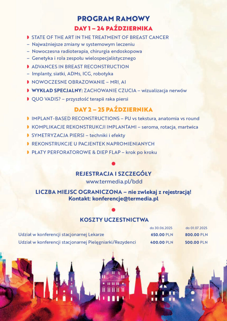 Konferencja to doskonała okazja do zapoznania się z najnowszymi kierunkami w leczeniu i rekonstrukcji raka piersi.