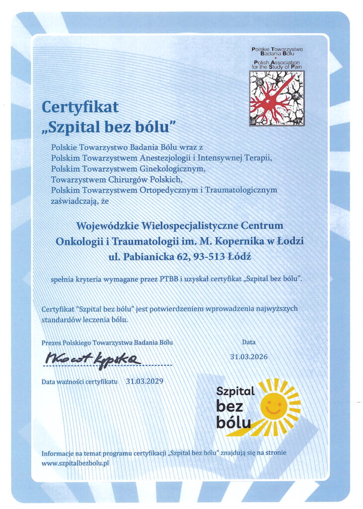 Certyfikat „Szpital bez bólu”