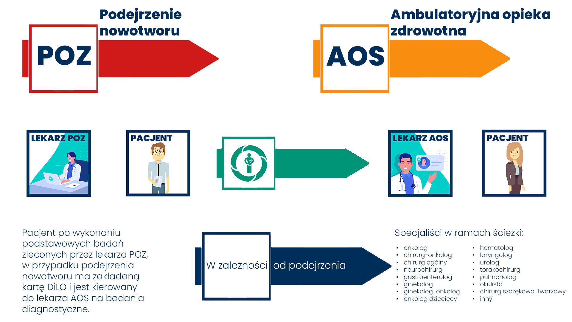 • pomoc w prawidłowym wystawieniu karty diagnostyki i leczenia onkologicznego (DiLO), oraz w kierowaniu pacjentów do Szpitala lub poradni specjalistycznych,