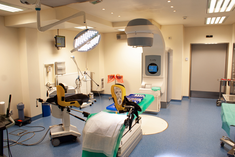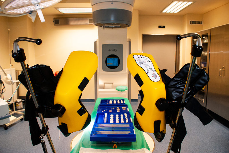 Ponieważ zabieg brachyterapii gruczołu krokowego odbywa się na bloku operacyjnym w znieczuleniu ogólnym. Przed zabiegiem w warunkach oddziału jest realizowana konsultacja anestezjologiczna celem wykluczenia przeciwwskazań do tego rodzaju znieczulenia. Cały zabieg brachyterapii trwa około 120 minut i polega na okuciu prostaty igłami pod kontrolą ultrasonografii, przygotowaniu indywidualnego planu leczenia i wprowadzeniu do aplikatorów źródła promieniowania (Ir192). Samo napromienianie w procedurze brachyterapii HDR trwa jedynie kilkanaście minut. Po przeprowadzonym leczeniu źródło promieniowania automatycznie wycofuje się do aparatu HDR Bravos, a następnie aplikatory igłowe są usuwane z ciała pacjenta. Pacjent pozostaje hospitalizowany na oddziale najczęściej dwie doby po zabiegu celem obserwacji. W zależności od stosowanego schematu leczenia, jest to jeden zabieg, lub są to dwa zabiegi w odstępie dwutygodniowym.