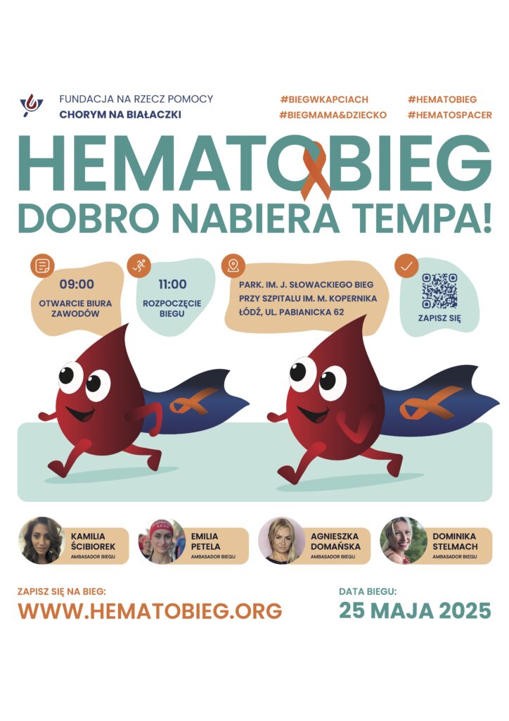 Szczegóły i zapisy na stronie www.hematobieg.org. Szpital Kopernika w Łodzi jest Patronatem II Hematobiegu.