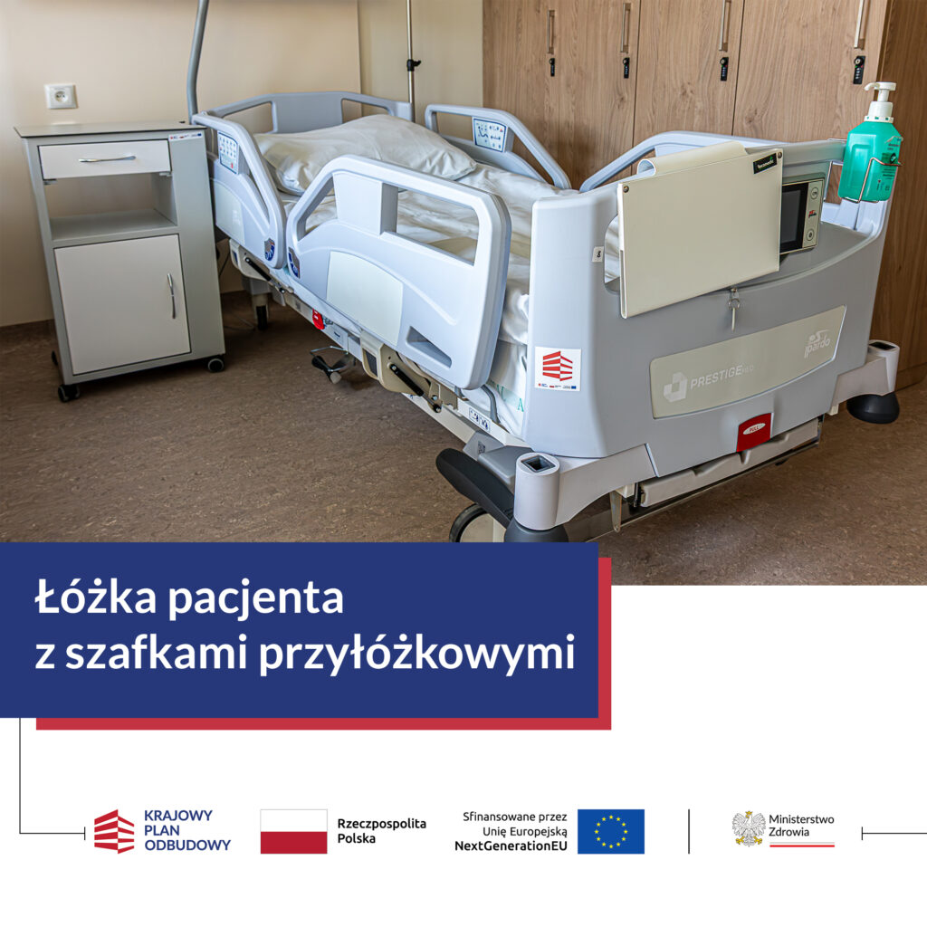 Łóżka pacjenta z szafkami przyłóżkowymi – 14 szt. (Typ NewCare V3 ACT) znajduje się na Oddziale Onkologii Klinicznej