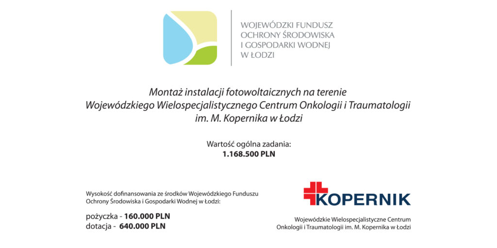 Montaż instalacji fotowoltaicznych na terenie Wojewódzkiego Wielospecjalistycznego Centrum Onkologii i Traumatologii im. M. Kopernika w Łodzi