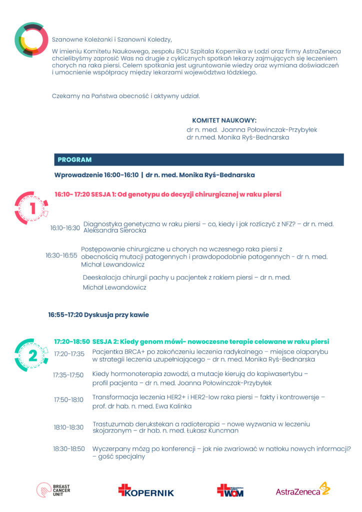 Jako Wojewódzki Ośrodek Monitorujący w Krajowej Sieci Onkologicznej zapraszamy lekarzy zajmujących się leczeniem chorych na raka piersi na drugie Multidyscyplinarne spotkanie BCU-edu.