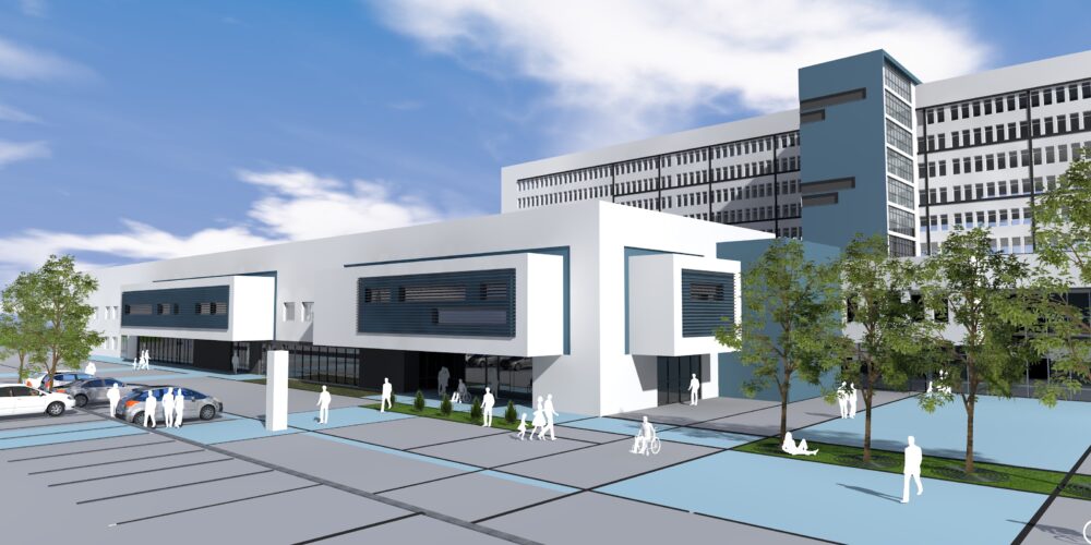 Prace budowlane prowadzone będą w tym i w przyszłym roku. Możliwe będą utrudnienia komunikacyjne i parkingowe przed Szpitalem (wjazd od ul. Pabianickiej 62). Prosimy o cierpliwość i wyrozumiałość w trakcie trwania tej inwestycji, której planowane efekty prezentuje wizualizacja poniżej…